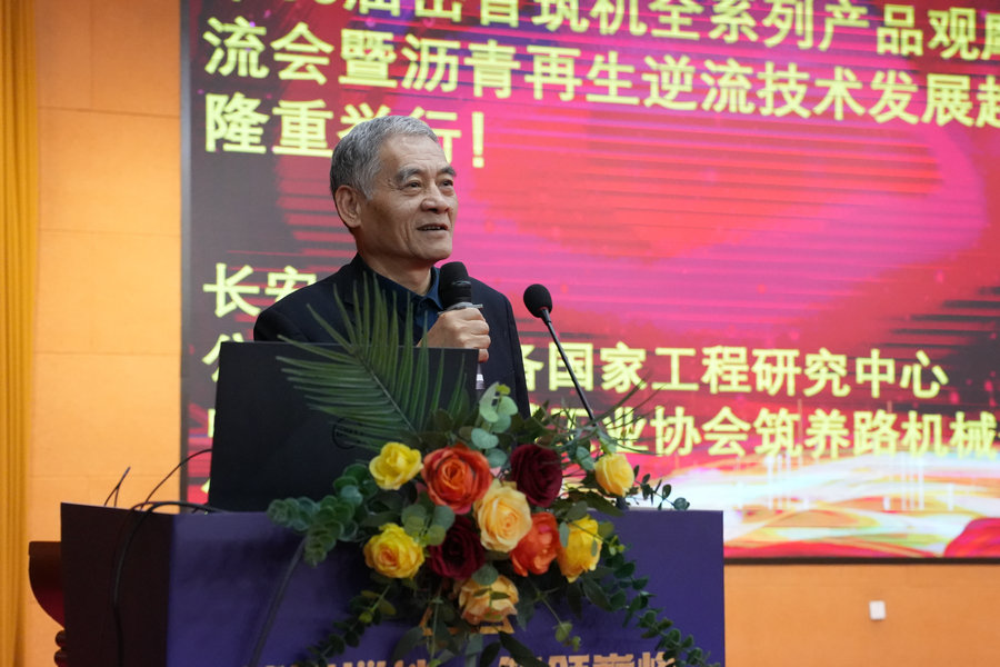 泰安市泰山区人大常委会党组副书记、副主任苏春明,长安大学公路养护装备国家工程研究中心二级教授焦生杰,中国工程机械工业协会筑养路机械分会秘书长张西农,岳首筑机董事长兼总经理李阿雁、中铁三局集团机械部蒋志兴、中铁二十一局集团三公司副总经理李芸、衡水金湖交通发展集团党委书记、董事长正高级工程师寇凤岐、山东沂蒙交通发展集团有限公司董事长孟祥涛等行业嘉宾、专家学者,与来自全国的工程施工、道路养护、装备制造领域的客户代表及技术骨干共300余人齐聚泰山脚下,聚焦工程搅拌装备技术创新与沥青再生逆流技术发展趋势,展开深度交流与探讨。