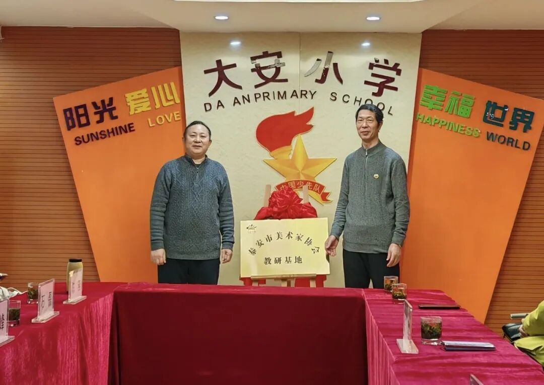 上午9时,活动在热烈的掌声中拉开帷幕。泰安市美术家协会主席与大安小学校长共同为“泰安市美术家协会教研基地”揭牌,标志着美协与学校在美术教育、课程建设、师资培养等方面建立起长期协作机制。该基地将成为推动美育资源下沉、助力校园艺术教育提质增效的重要平台。