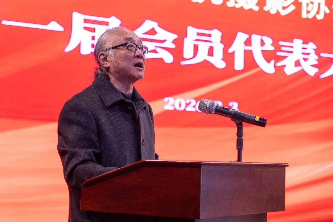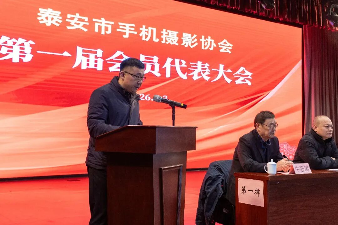 当选的泰安市手机摄影协会主席牛静涛代表协会理事会表态