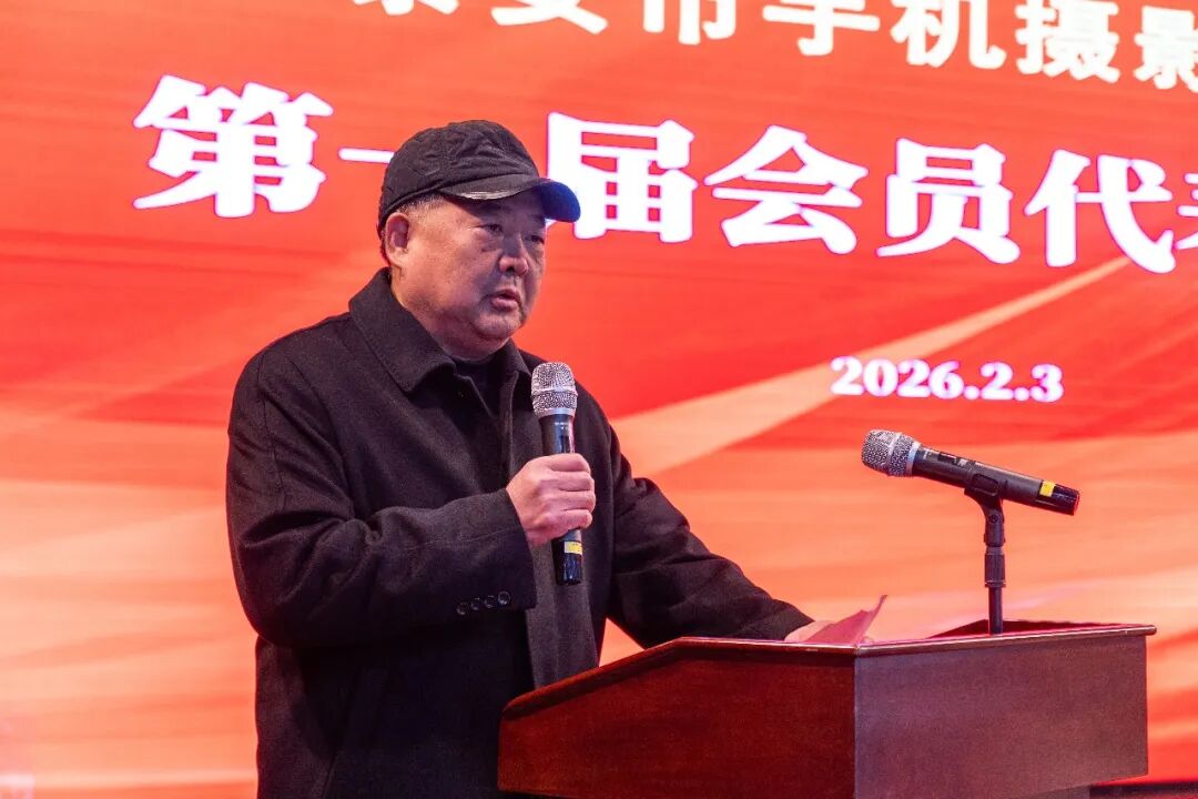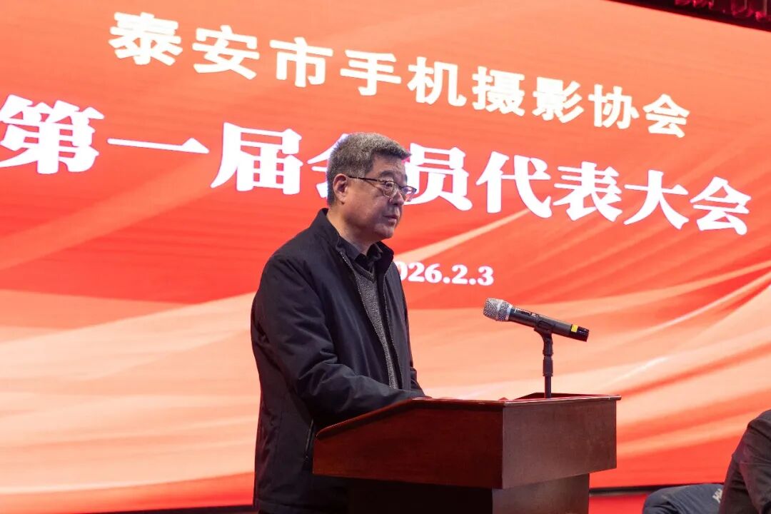 泰安市文联党组书记、主席李建蔚在讲话中强调,手机摄影以其便捷性、普及性,让文艺创作走出专业殿堂、走进千家万户,为文艺事业发展注入新活力。他指出,泰安坐拥泰山文化、大汶口文化的深厚底蕴,田间地头的烟火气、山川胜景的雄奇美、城乡发展的新面貌,都是摄影创作的不竭源泉。协会应立足泰安实际,持续深化“六位一体颂泰山,艺联八方兴泰安” 品牌建设,始终坚守以人民为中心的创作导向,组织会员深入基层、扎根人民,既要捕捉自然之美,也要记录城市发展、乡村振兴的鲜活场景,更要定格百姓的幸福瞬间。他要求协会开展常态化采风创作与惠民活动,让摄影艺术下沉基层,用镜头讲好泰安故事、传播泰山声音,为文化强市建设注入强劲动能。