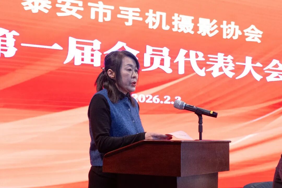 当选的泰安市手机摄影协会主席牛静涛代表协会理事会在会上发言时表示,将不负重托、恪尽职守,带领协会坚守文艺为民初心,搭建起交流展示、学习提升的优质平台。未来将重点开展三方面工作:一是建强队伍,吸纳更多手机摄影爱好者加入,开展专业培训与创作交流活动;二是打造品牌,策划推出泰山、汶河主题摄影展,举办手机摄影大赛,提升协会影响力;三是深化惠民,组织会员深入社区、乡村、企业开展公益拍摄,让摄影艺术惠及更多群众。他承诺,将带领全体会员用镜头捕捉时代脉搏,用影像传递泰安温度,努力创作出更多接地气、有筋骨、见情怀的优秀作品。