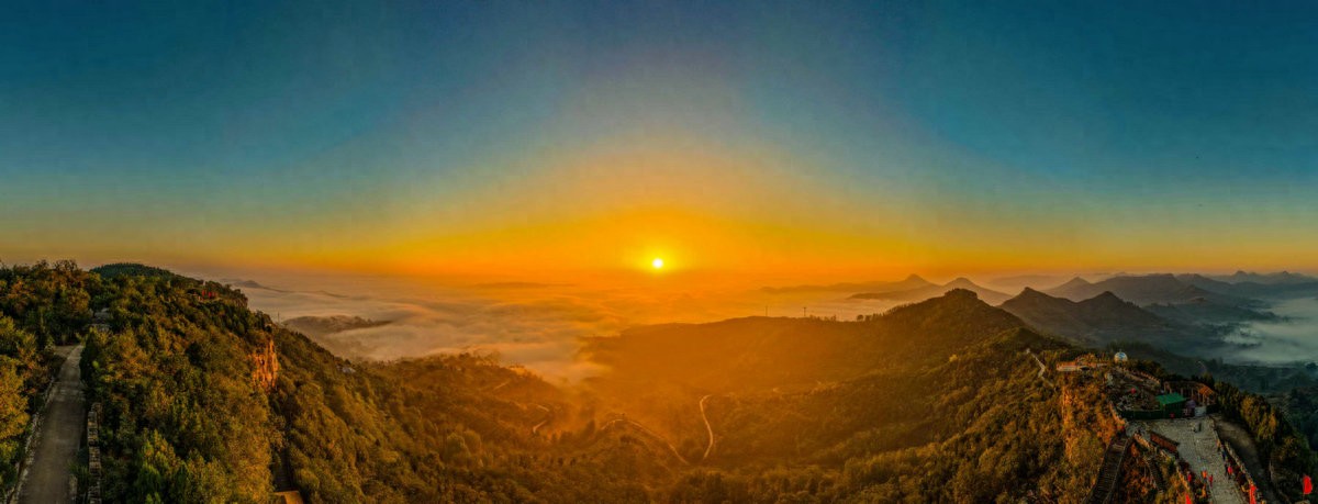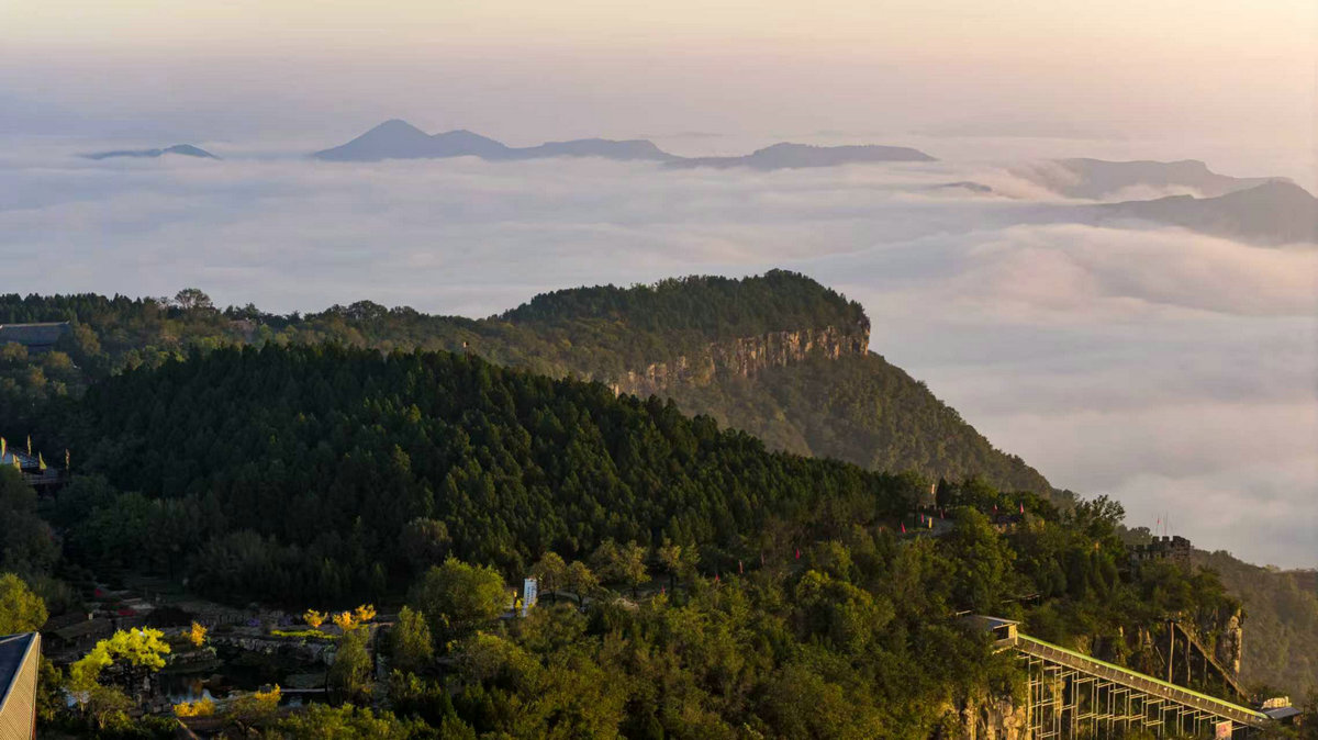 然而,天上王城的魅力远不止于历史。尽管海拔不足600米,但它却常常邂逅气象奇观——平流雾。当雾气弥漫,从山顶眺望,便是波澜壮阔的茫茫云海,纪王崮如同悬浮于天际的仙岛,王城建筑在云涛中若隐若现,蔚为壮观。