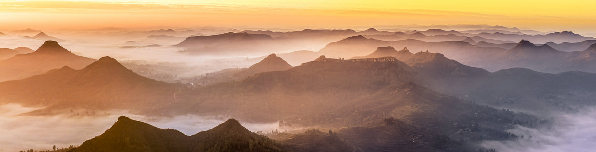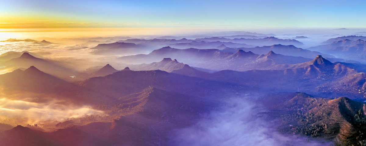 登上纪王崮顶时,东方正微露晨曦。脚下的深渊开始苏醒,乳白色的云霭从群山中无声升起,汇聚、流淌,最终在悬崖边铺展成一片浩瀚无垠的云海。它柔软如絮,平静如镜,淹没了尘世的一切。