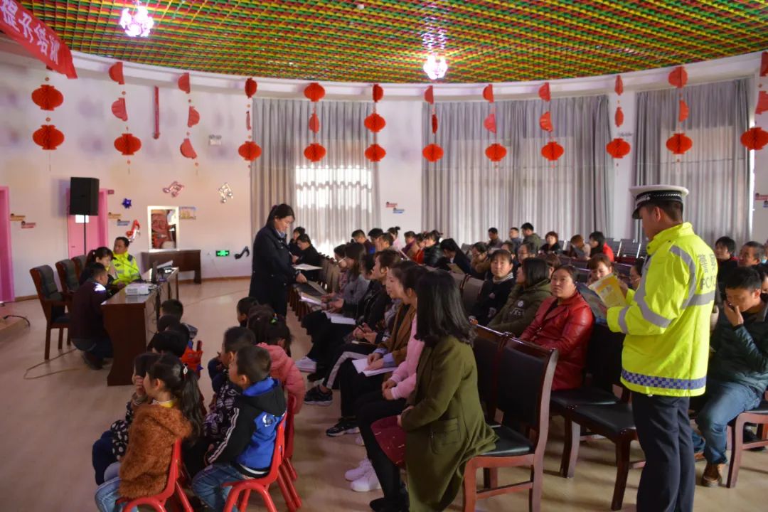 在米家园则小学,民警根据学生的年龄特点,紧紧围绕“守法规知礼让 安全文明出行”主题,用浅显易懂的语言向师生们讲解了交通标志标线、车辆盲区、上下车注意事项等交通安全常识,叮嘱同学们切勿随意横穿马路、追逐打闹。民警结合学生上下学途中引发的交通事故典型案例,对农用车违法载人、乘坐汽车不系安全带、乘坐摩托车、电动自行车不佩戴安全头盔的危害进行进一步说明,倡导同学们与父母一起用实际行动为安全交通“代言”。