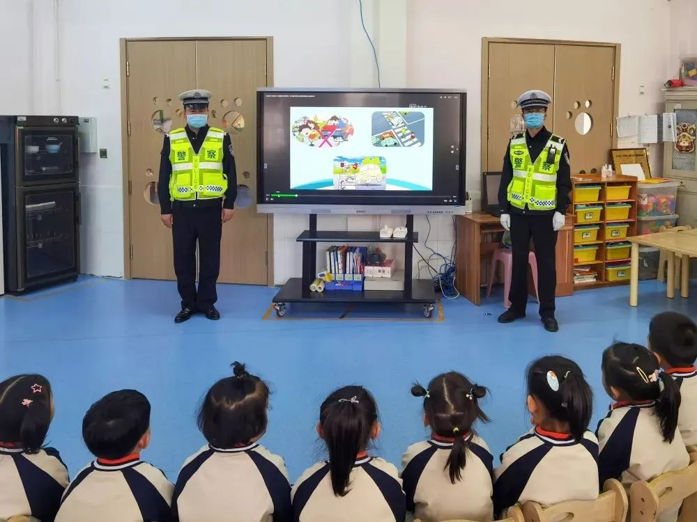 课上,民警察不仅以卡通动漫PPT的形式向孩子们讲述该如何正确的在马路上行走,如何正确的乘坐电动车、小汽车,以及播放了幼儿交通安全宣传片,用孩子们能理解的形式讲述了父母骑电动车、摩托车在上、放学接送孩子不戴头盔、不系安全带、横穿马路的危害。
