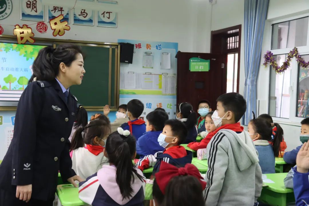 课堂中,交通民警结合学校周边交通环境,叮嘱学生们要从小摒弃交通陋习,养成文明参与交通的好习惯,号召孩子们争做交通安全宣传员,主动开展“小手拉大手”活动。督促家长尊法守规明礼,共同营造一个“开心上学、平安回家”的文明和谐的道路交通环境。