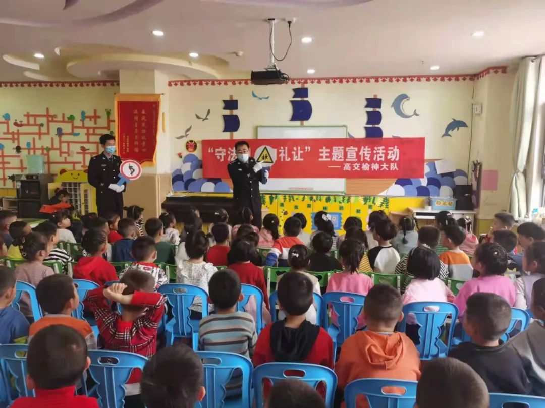 榆林市公安局交警支队高交榆神大队民警精心筹备,走进榆林市高新华府幼儿园,以守法规知礼让为主题,为孩子们上了一堂别开生面的交通安全常识宣传教育课,送上了一份充满交警浓浓关爱的“平安”大礼。