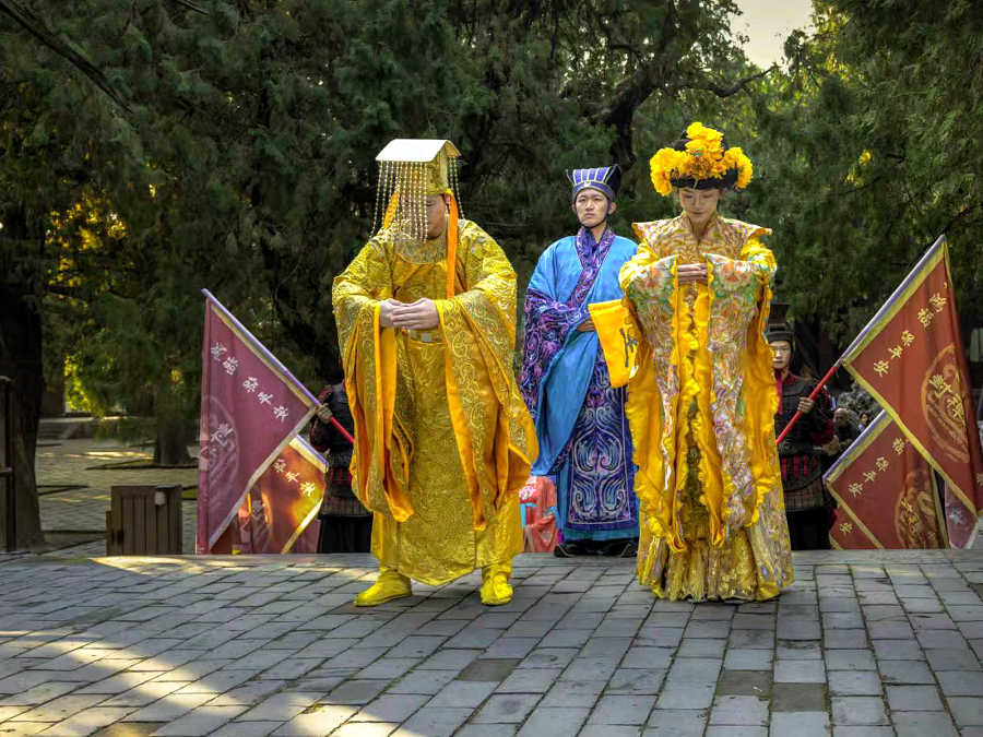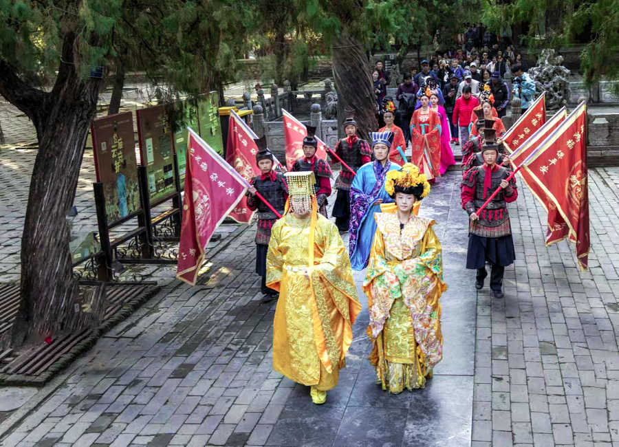 国外游客在泰山岱庙体验“祭孔封禅仪式”