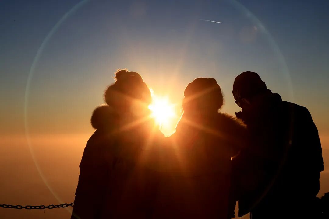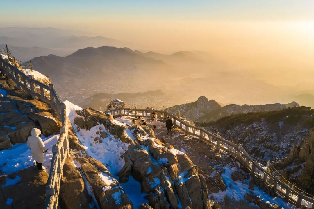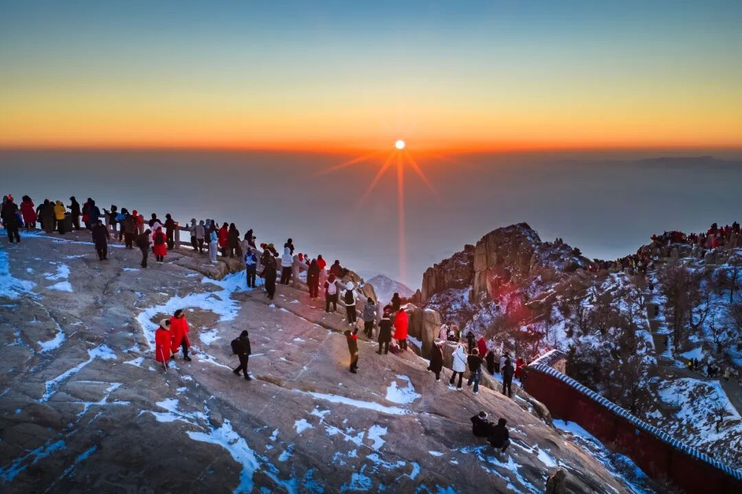 踏雪而来的游人,成了这仙卷里最鲜活的点缀。有人以雪松为幕、云海为景定格瞬间,解锁泰山冬日的专属打卡姿势;有人追着日出在雪径上慢行,指尖轻触枝头的白雪,笑意融在山风里。欢笑声揉碎了山间的清冷,让这片缥缈仙境,多了人间烟火的暖意。